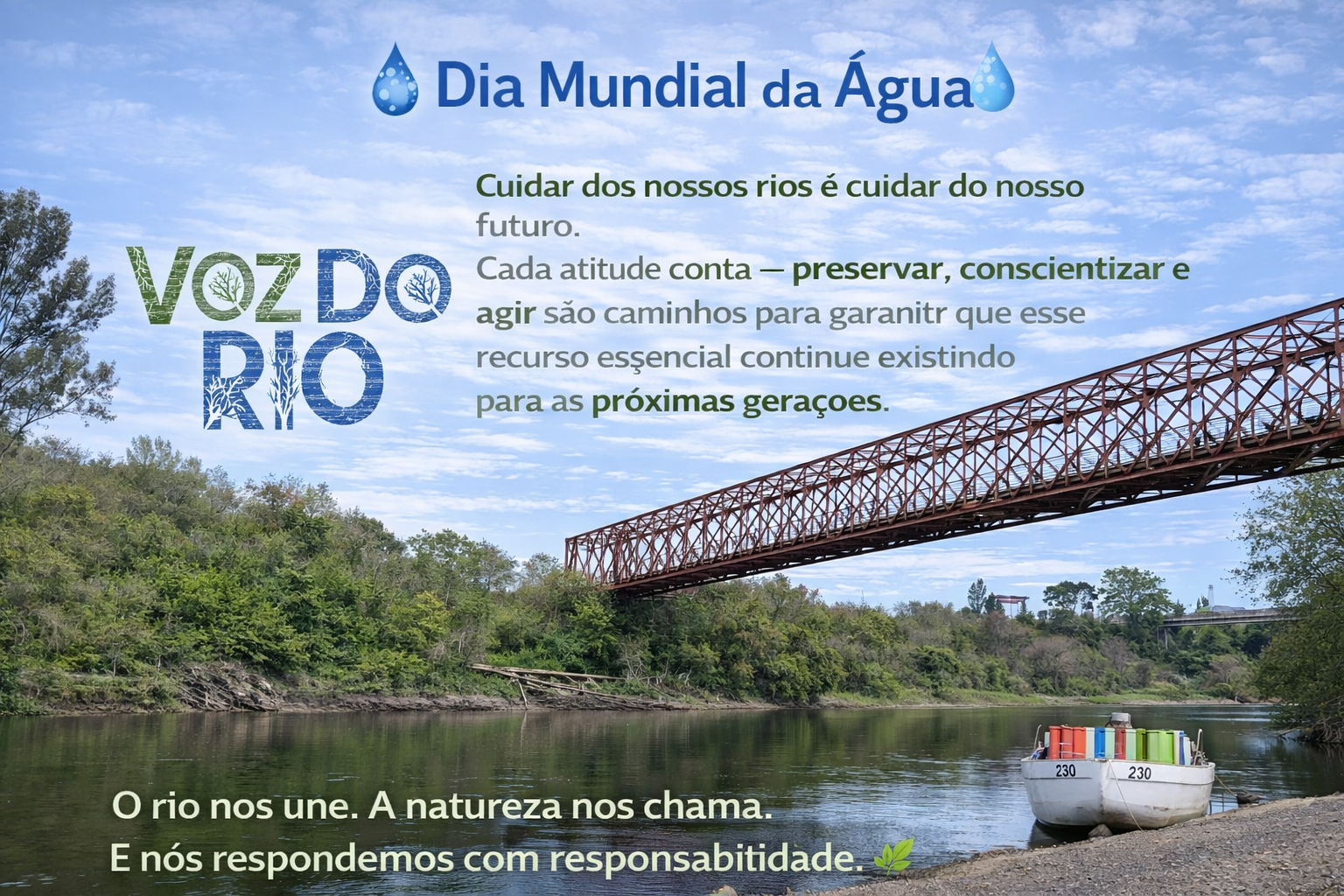 Cuidar dos nossos rios é cuidar do nosso futuro. Cada atitude conta — preservar, conscientizar e agir são caminhos para garantir que esse recurso essencial continue existindo para as próximas gerações.
